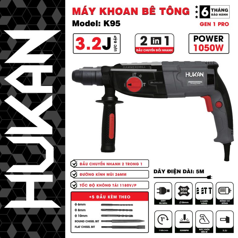 * Tặng kèm 3 mũi khoan, 2 mũi đục.